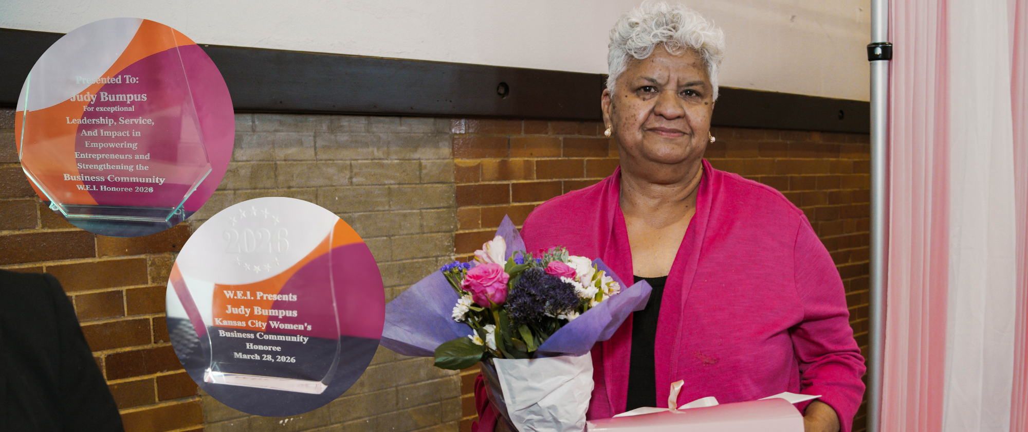 The brunch featured guest speakers and honored outstanding women for their achievements. Among the highlights, Judy Bumpus, Director of Client Services for the Women’s Business Center, received two 2026 W.E.I. Awards recognizing her contributions and leadership — the first for Exceptional Leadership, Service, and Impact in Empowering Entrepreneurs and Strengthening the Business Community Honoree and the second as the Kansas City Women's Business Community Honoree.